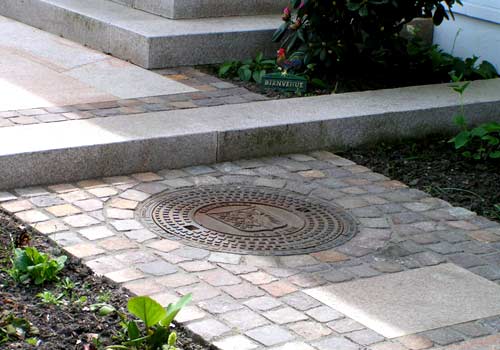 Überplanung einer vorhandenen Garagenzufahrt mit zusätzlichem Stellplatz. Erneuerung des Eingangspodestes und Nebeneingang zu einer Einliegerwohnung.